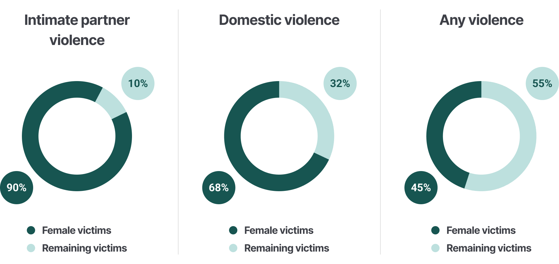 Data is also widely available on the annual number of female and total victims of homicide committed by intimate partners, domestic perpetrators, and any perpetrator.