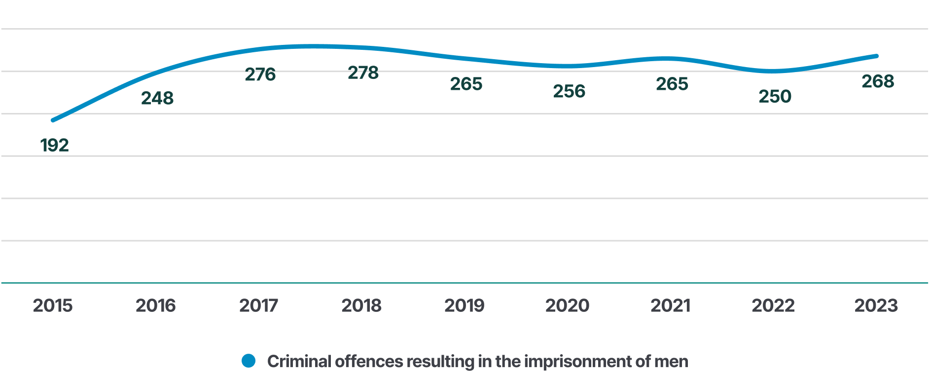 In 2023, there were 268 criminal offences involving domestic violence that resulted in the imprisonment of male perpetrators.