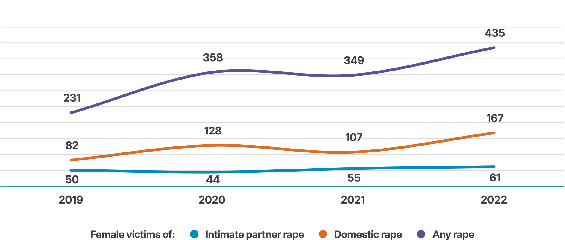 Figure 10 Annual number of female victims of intimate partner rape, domestic rape, and rape in any relationship (Indicator 8), 2019-2022