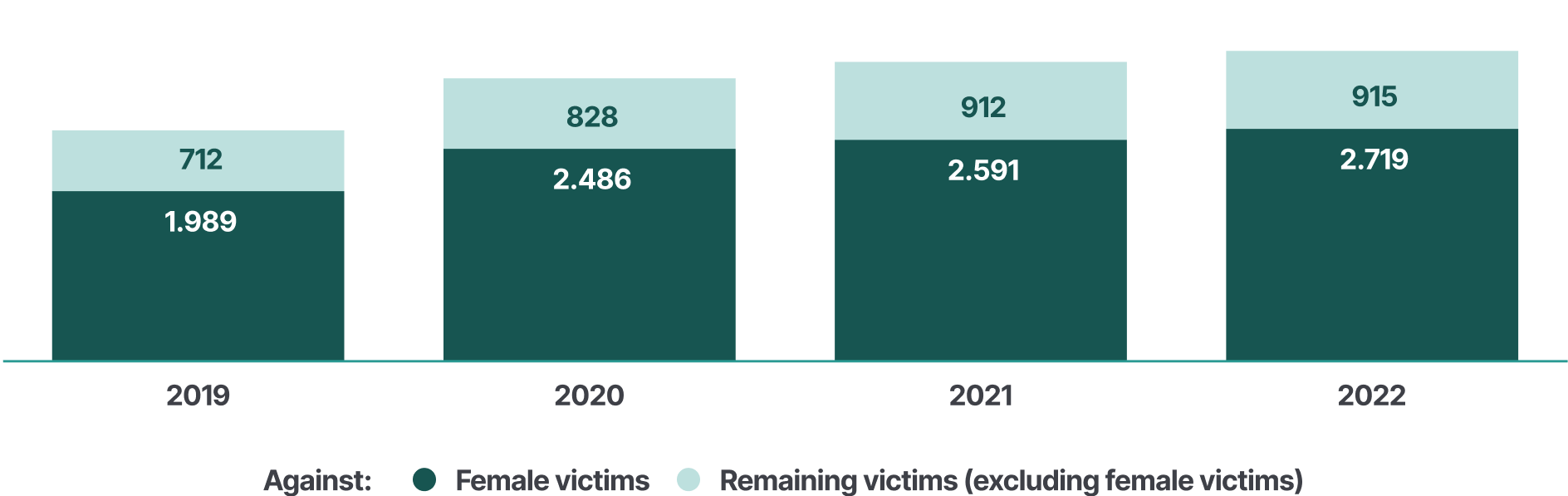 Between 2019 and 2022, the annual number of domestic violence victims recorded by police has increased. It should be noted however that fluctuations between years can be attributed to various social and institutional factors and do not necessarily imply that violence has worsened in the country over time.