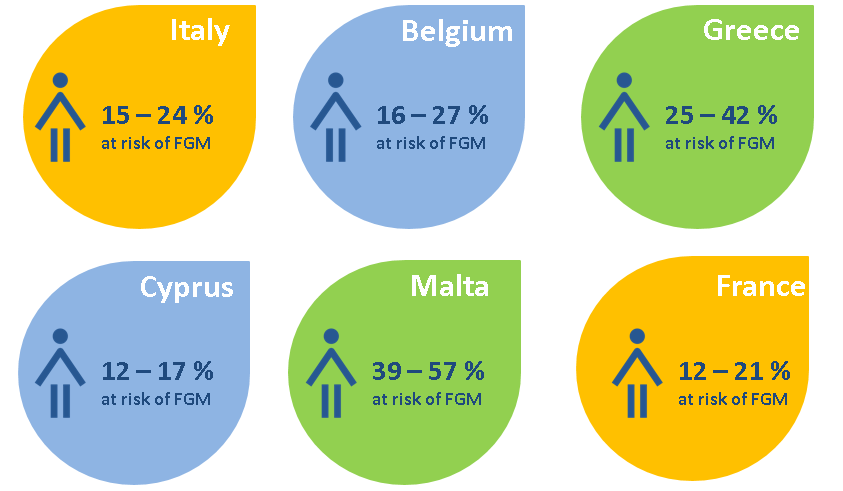 • In Greece, 25 % to 42 % of girls were at risk of FGM out of 1 787 girls originating from countries where FGM is practised.