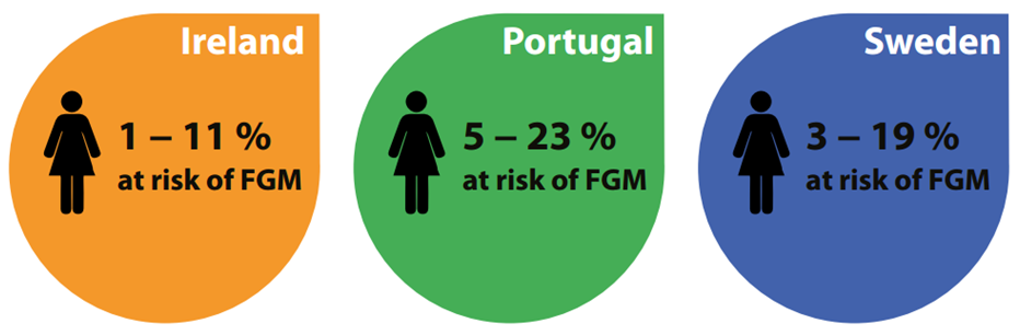 • In Portugal, 5 to 23 % of 5,835 girls originating from FGM risk countries were likely to be at risk of FGM.