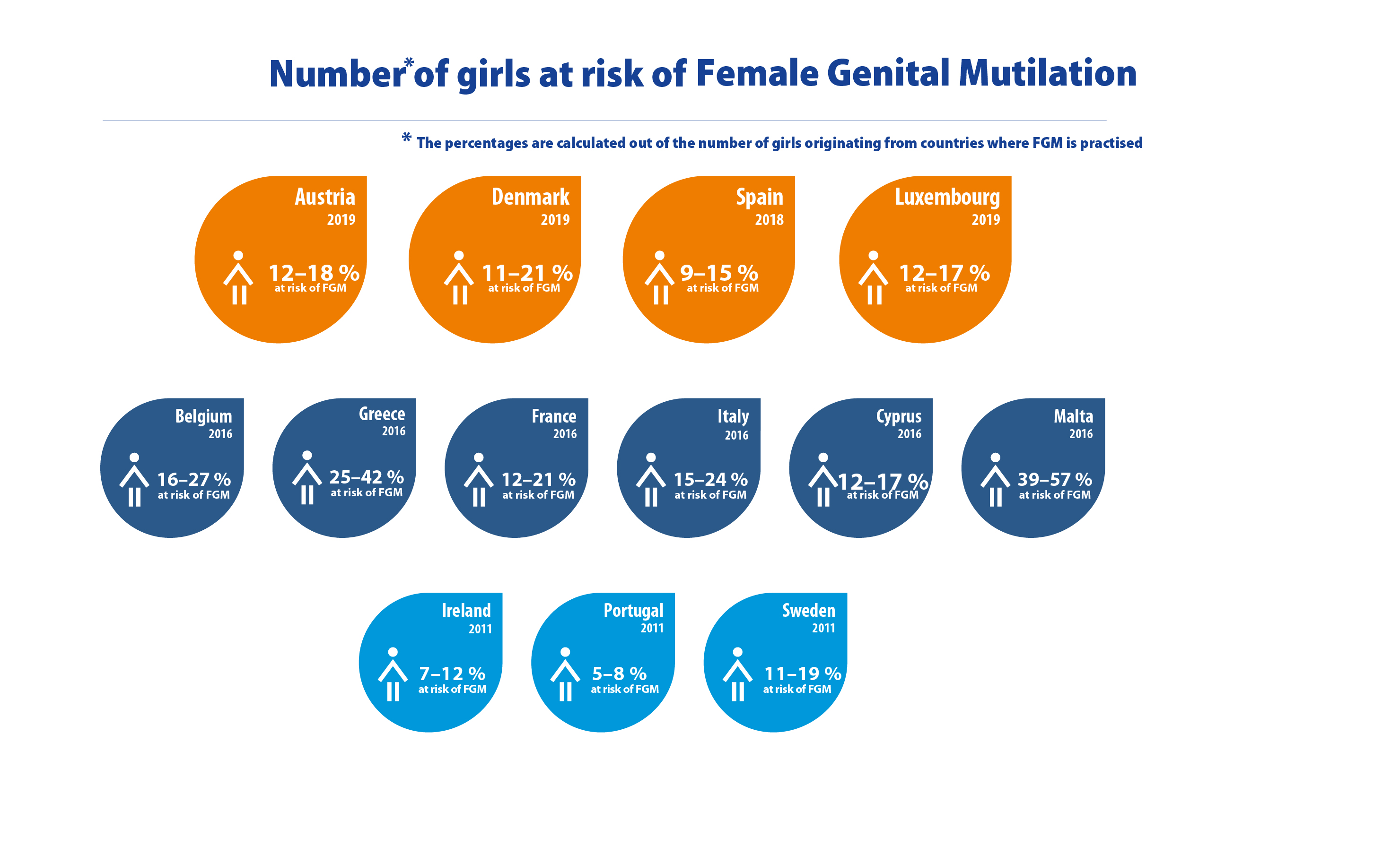 • In Malta, 39 % to 57 % of girls were at risk of FGM out of 486 girls originating from countries where FGM is practised.