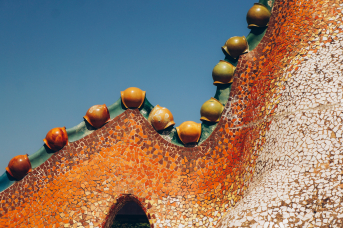 Illustration of two women walking along a street lined with various symbols of work, learning and innovation