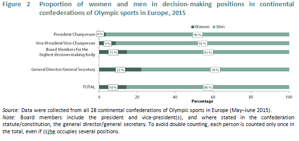 Gender inequalities are evident across the sports sector, from representation at decision-making levels and media coverage, to participation in sports activities including coaching. Women may also face a general lack of safe and appropriate sports facilities, potentially exposing them to physical and/or verbal sexual harassment and assault. They may also experience additional physical constraints, lack of time and/or lack of childcare facilities.