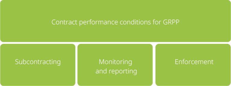 Contract performance conditions should always be appropriate for the specific contract. Therefore, avoid relying on generic or standard GRPP terms without considering their relevance.