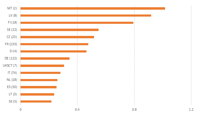 Note: the number of jurisdictions add up to 30 and not 28 (the official number of Member States till 2018) as three different jurisdictions exist in the UK (England and Wales, Scotland, Northern Ireland).